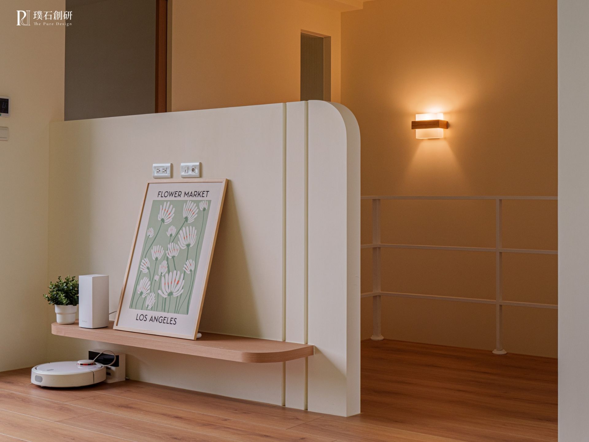 設計主軸以日式簡約風格勾勒出樸實溫暖的空間輪廓,大量使用木頭調地板及白色牆面,營造出通透感和溫暖感,彷彿置身於自然之中。透過木質元素和白色調的搭配,打造出樸質的自然氛圍,營造出舒適無壓力的空間感。